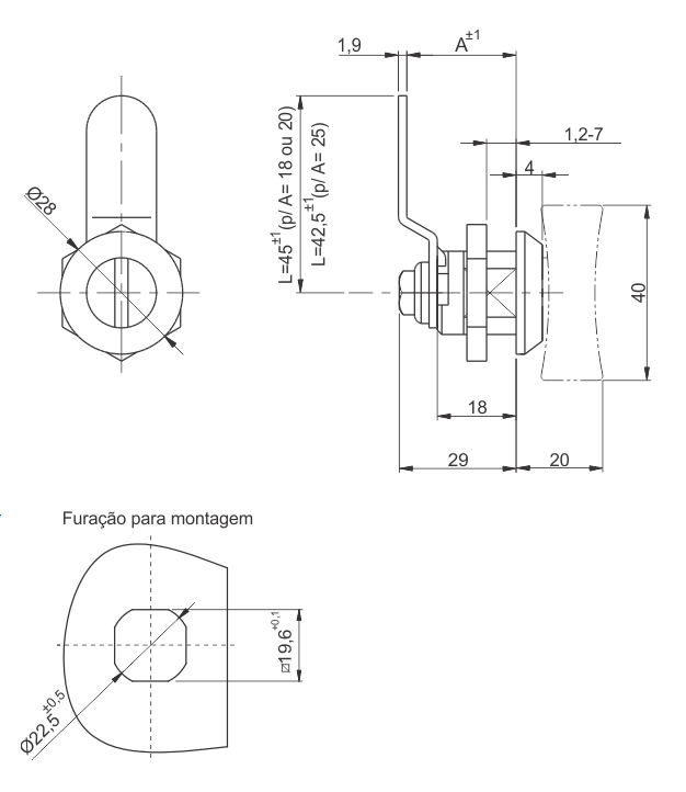 Facil instalação, sem necessidade de desmontagem da lingueta. Fixação através de porca M22.