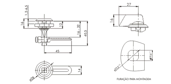 Chave fecho 2830 com acionamento tipo “Manual”.