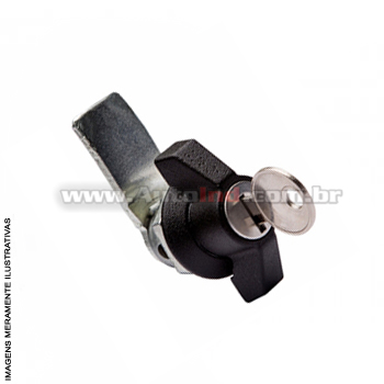 Manopla, bucha, miolo e porca injetados em zamak. Lingueta confeccionada em aço com espessura de 3,8 mm.