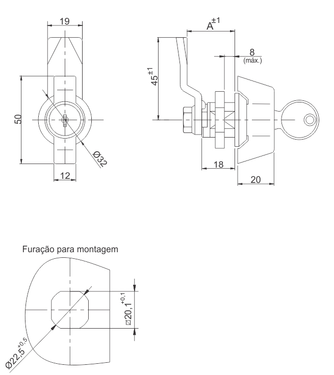 Fácil instalação, sem necessidade de desmontagem da lingueta. Fixação através de porca.