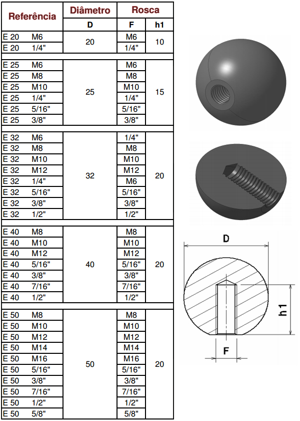 Esferas fabricadas em Baquelite, disponível nas medidas descritas de acordo tabela abaixo.