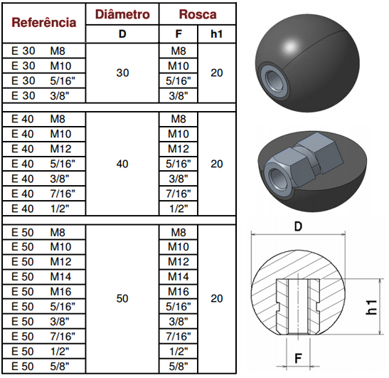 Esferas fabricadas em Polipropileno, disponível nas medidas descritas de acordo tabela abaixo.