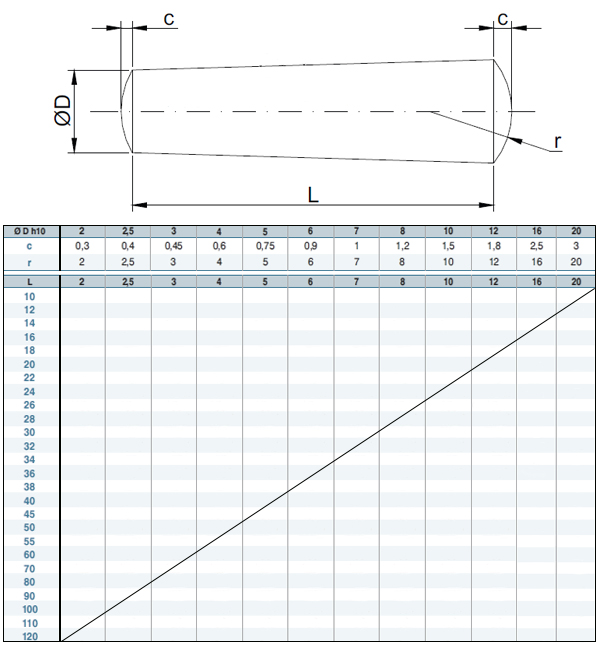 O Pino guia cônico DIN 1 é utilizado para travamento de engrenagens, polias, volantes e dispositivos em geral.